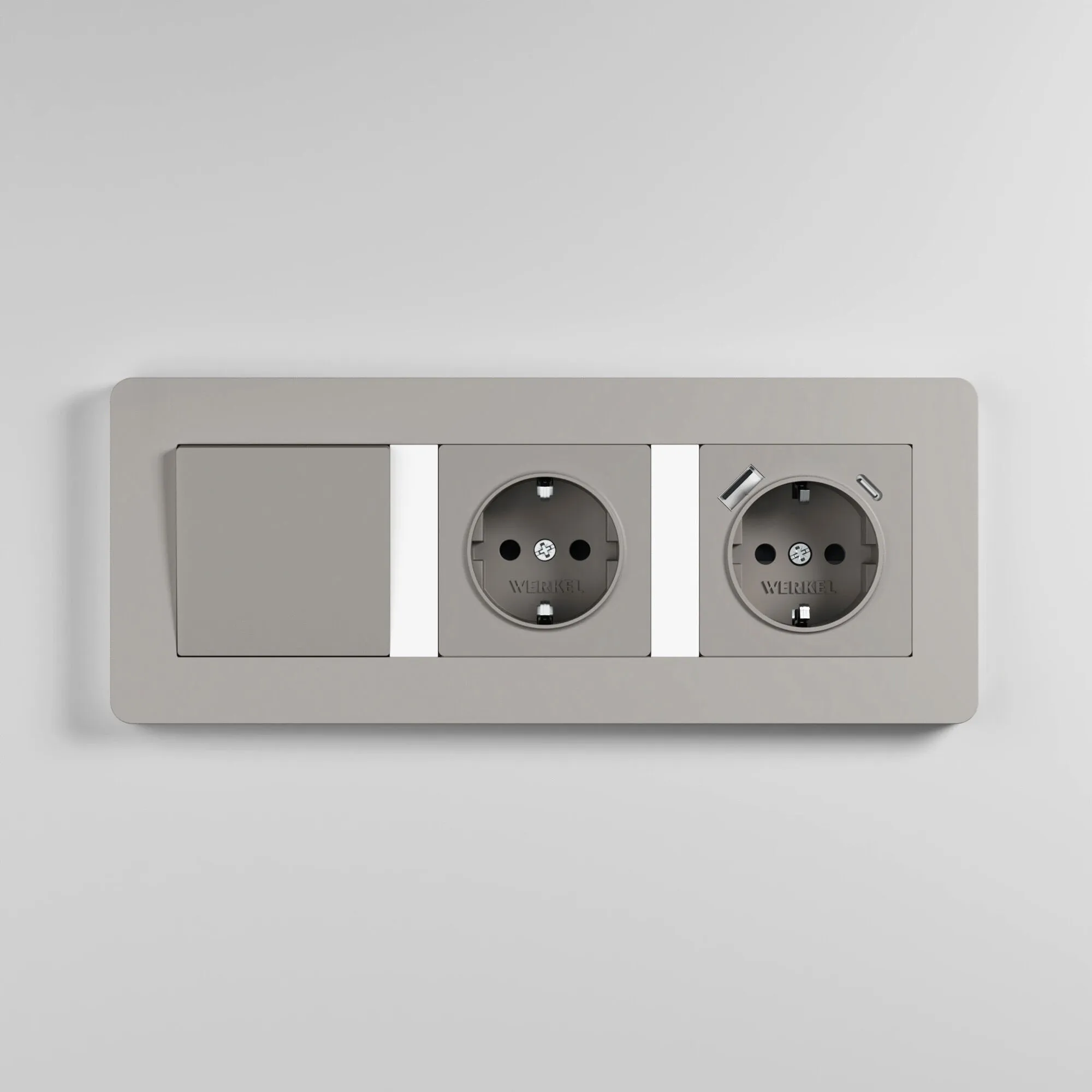 Трехпостовая рамка Split дымчатый/белый soft-touch W0033067 от Werkel — сдержанная элегантность и тактильный комфорт в современном интерьере