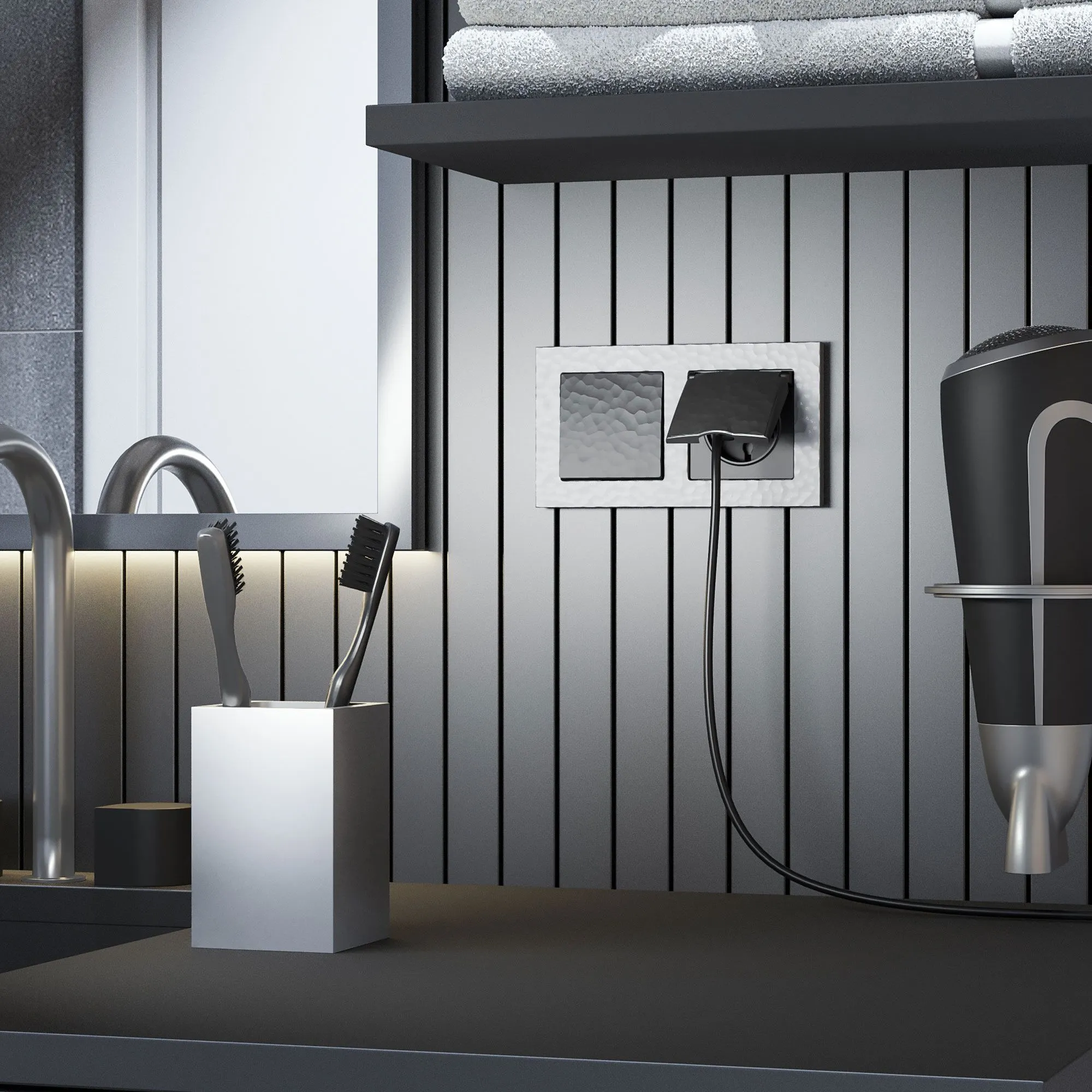 🔹Нержавеющий металлический суппорт — обеспечивает прочную и надёжную фиксацию в подрозетнике, исключает люфт и деформацию рамки даже при частом использовании.