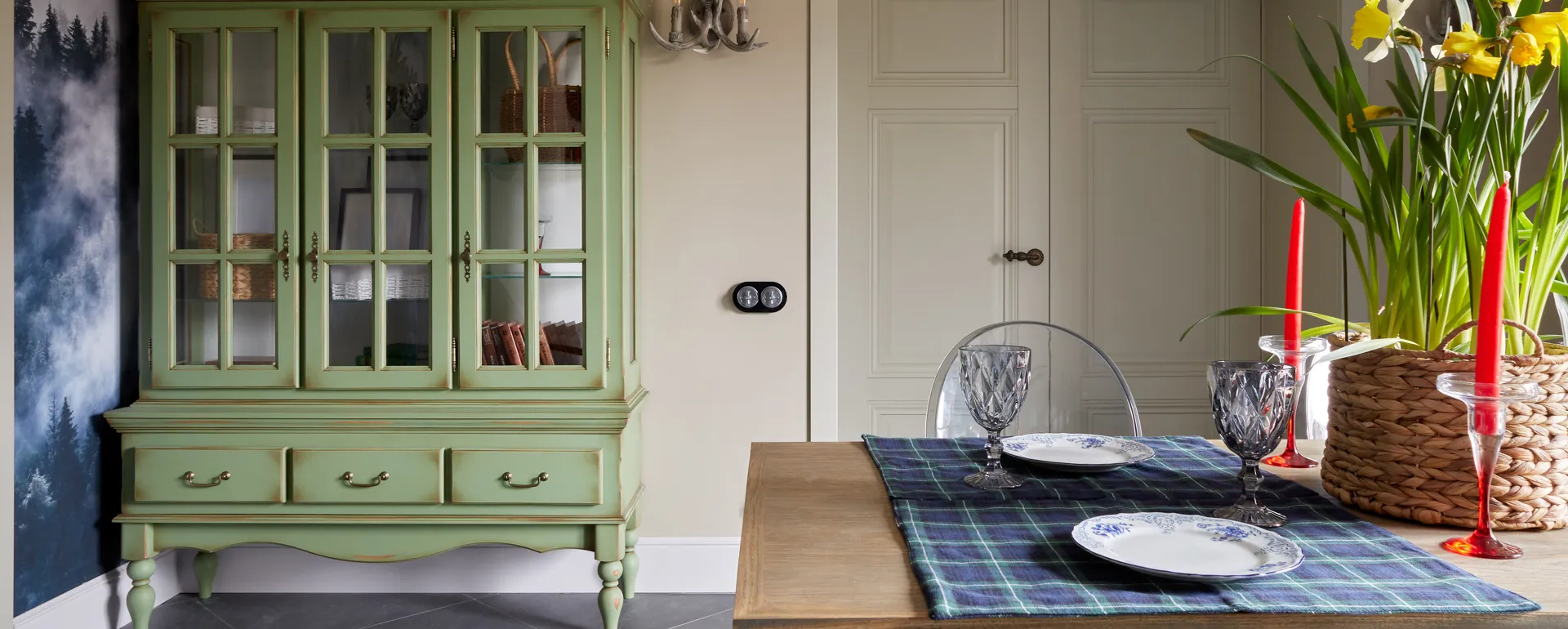 На видных местах разместили механизмы из коллекции Retro, выполненные в цвете «серебро». Их прочный металлический корпус и высококачественное гальваническое покрытие стали ключевыми элементами декора, подчеркивающими тематику рыцарского замка. Стильным дополнением к механизмам стали рамки из закалённого стекла серии Favorit Runda в черном цвете, которые добавили интерьеру элегантности и завершенности .